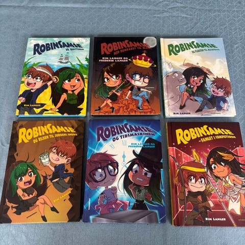 Serien følger Robinsamse i forskellige eventyr, illustreret i farver.