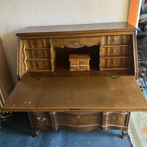 Skrivebureau med jalousilåge i træ