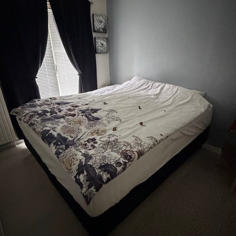 Brugt men brugbar kontinentalseng 180×200 cm. Topmadras medfølger- også brugt. Kom med et bud.