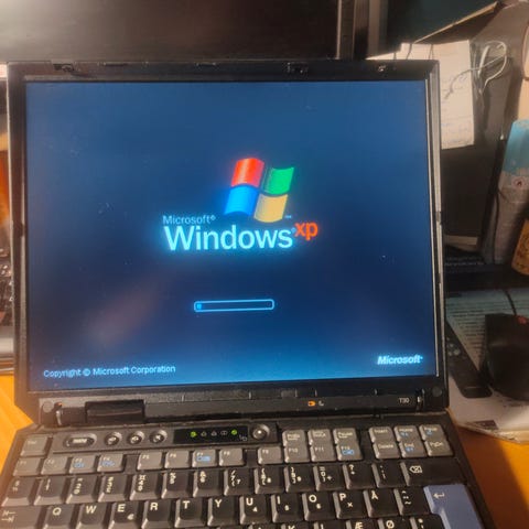 Den har ingen harddisk og heller ingen strømforsyning, så det skal købes et andet sted, men den er i god stand og tastaturet er skønt at skrive på.