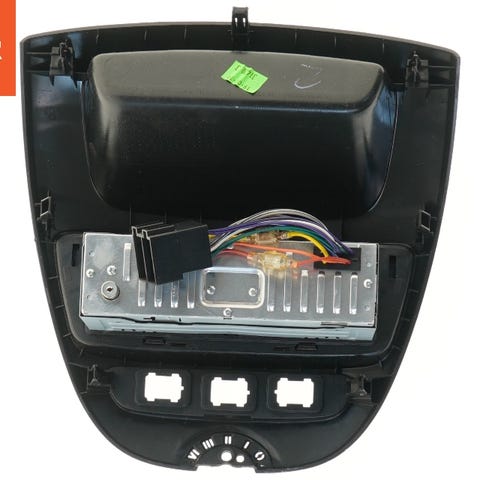 Citroen original bilradio med integreret frontpanel og betjeningsknapper. Enheden har indbygget radio og cd-afspiller samt display i fronten. Tilslutningerne er placeret bagpå enheden. Passer på C1 og 107 og sikkert til Aygo, alle op til årg 2014