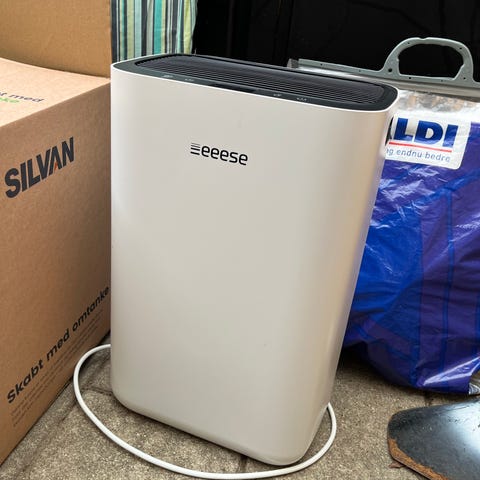 Eeese Emma affugter i hvid farve. Modellen er egnet til affugtning af indendørs rum, f.eks. bolig, kælder eller bryggers op til 100 m2.