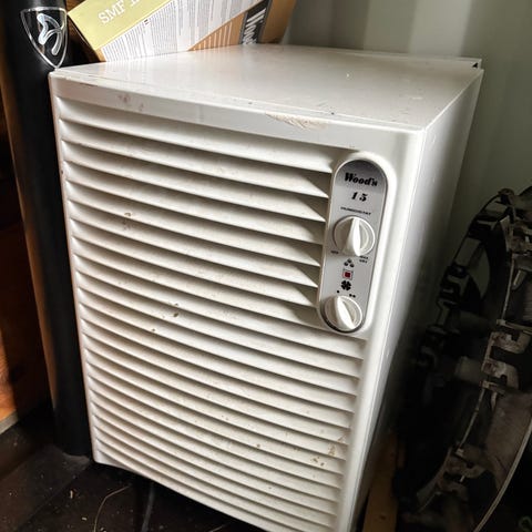 Enheden har betjeningspanel på toppen med knapper til tænd/sluk, ventilatorindstilling og andre funktioner. Leveres med brugermanual til modellen Emma, art. 2688.