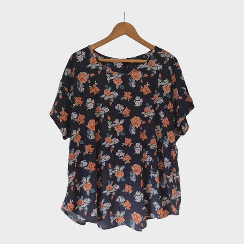 Selected Femme T-shirt til kvinder i str. L. T-shirten er fremstillet i viskose og har et multifarvet blomstermønster med mørk bund. Modellen har rund hals og kort ærme samt lille åbning med lukning i nakken. Velegnet som hverdagsbluse eller til mere pæne anledninger.