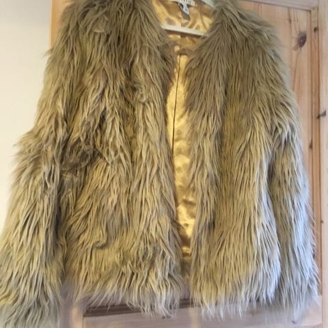 Som man kan se på det ene billede, mangler den lidt pels nederst på det ene ærme, men udover det er den utrolig pæn og velholdt. Der er et tyndt silkeagtigt foer i den.
