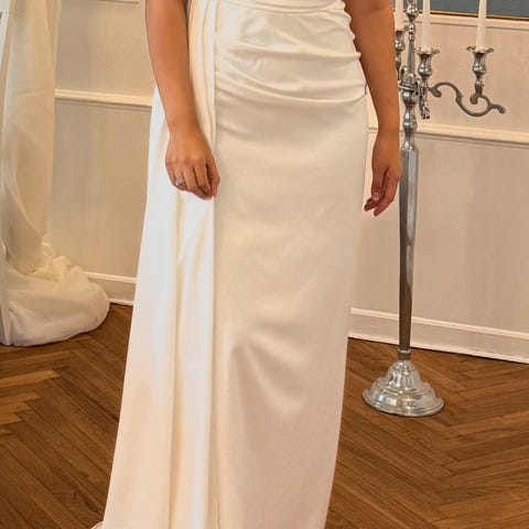 Elegant og feminin hvid kjole i let og luftig chiffon. Kjolen har en flot pasform og et klassisk, tidløst design, som gør den ideel til bryllup, konfirmation eller andre festlige begivenheder.