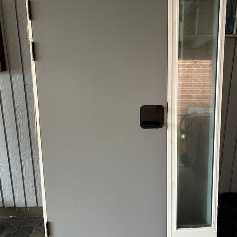 Facadedør / pladedør grå med hvid kant. Højde 212 cm - brede 95.