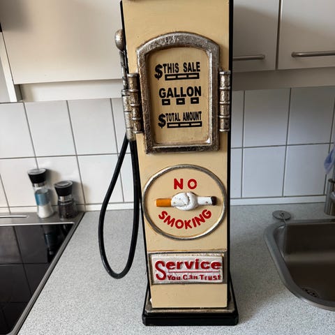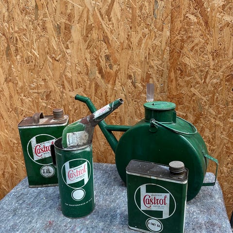Caltex, Esso, Shell, Castrol mv, pumper, bøtter, kander, dåser, spande, tønder, skal sælges ud af samlingen. Rigtig mange ting til Herreværelset, Mancaven, garage projektet osv osv. Mange fine dekor ting.
