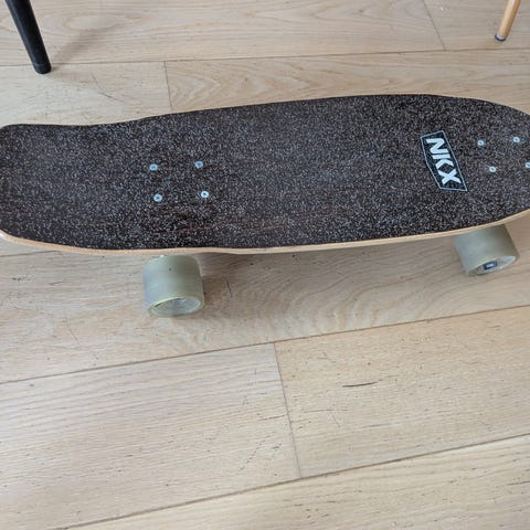 NKX longboard i træ med brun og sort underside og sort griptape på oversiden. Boardet har lyse hjul og metaltrucks. Velegnet til cruising og transport på asfalt og andre jævne underlag.