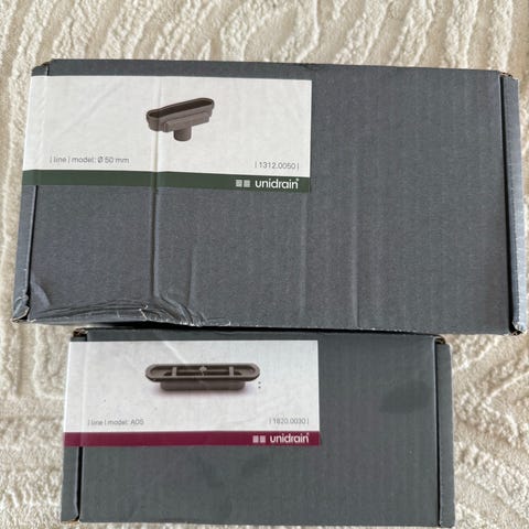 Unidrain HighLine afløbsarmatur med vandret udløb. Afløbsarmaturet er udført i grå plast og leveres i original æske med modelnummer 1421.0075. Passer til Unidrain HighLine/Classicline systemer efter producentens anvisninger.