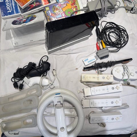 • Selve konsollen: Nintendo Wii (Original RVL-001 med GameCube-porte i toppen).