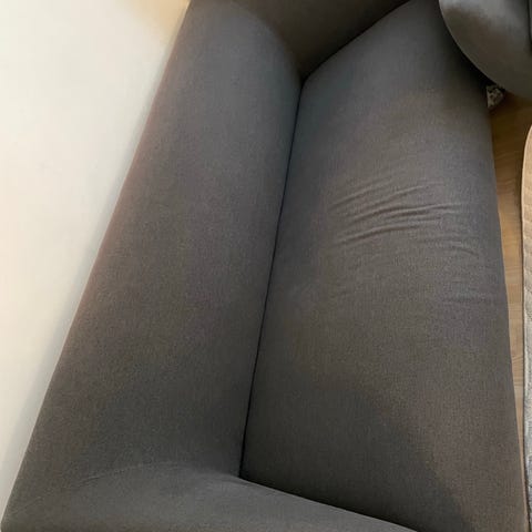 Sofa is approx 2m wide, 60cm deep and variable height. The back can be put down flat to turn this into a ved or lounge item. The back can be set upright at two different angles.