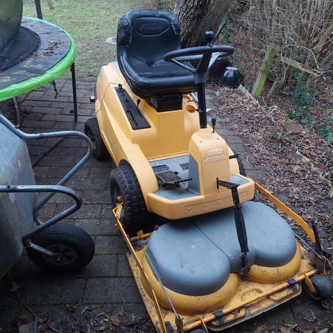 Her har vi en ægte klassiker: en gammel Stiga Senator, som lige nu befinder sig i kategorien “saml-selv-projekt”.