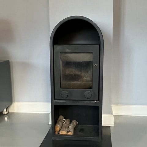 Vi havde de helt store planer om at bygge vores egen pizzaovn ud af denne solide stålbrændeovn… men så fik vi en færdig pizzaovn i julegave 🙈🍕