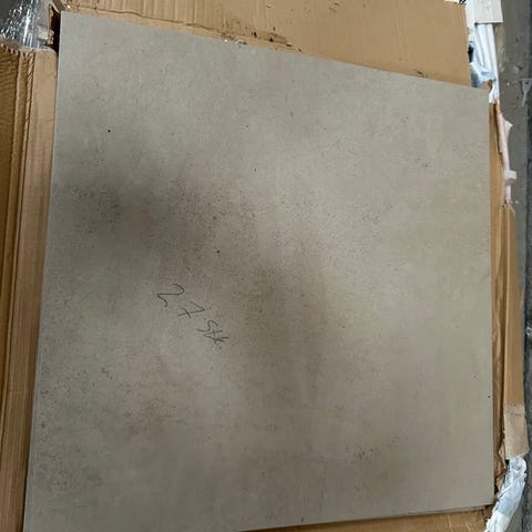 Kvadratiske fliser i beige/lys naturfarve. Fliserne er samlet på net i felter af 3 x 3 småfliser. Hver lille flise måler ca. 10 x 10 cm. Overfladen er let nuanceret med stenlook, og bagsiden er rillet/net-monteret til montering. Velegnet til fx vægge eller mindre gulvarealer, hvor der ønskes et lyst, neutralt udtryk.
