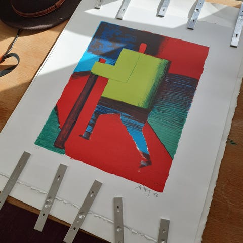 "A Mile in the Woods", 29,5 x 42 cm, litografi fra 2013, 14/50, ikke indrammet, ikke i perfekt stand.