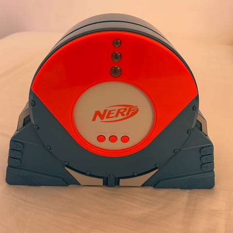 Sælger denne her elektriske gun skydeskive fra Nerf, som tæller point på tid, når man rammer skydeskiven.