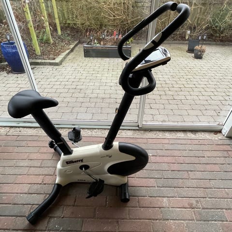 Super fin og kun brugt i en måned motionscykel fra Killberry. Jeg har brugt den i et genoptræningsforløb, hvor den har fungeret super. Den kan desuden klappes helt sammen og også indstilles, så saddel er længere fra styret end på billedet. Ingen brugsspor.