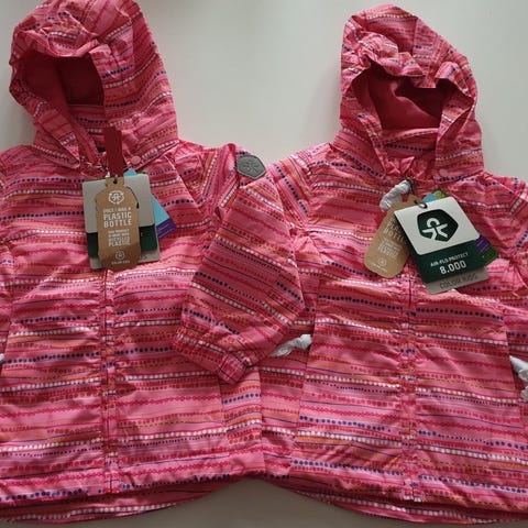 Skaljakke med lameller af dun på forsiden, lynlås og to lommer