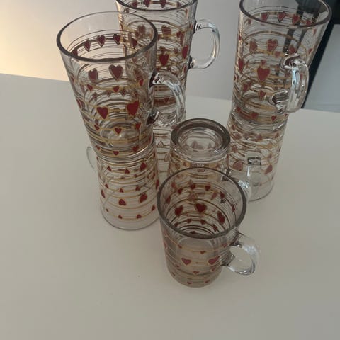 Mundblæste vandglas i glas på 25 cl. Glasene er blå med mønstret overflade og gennemsigtig bund. Velegnet til servering af kolde drikke i køkken eller spisestue.