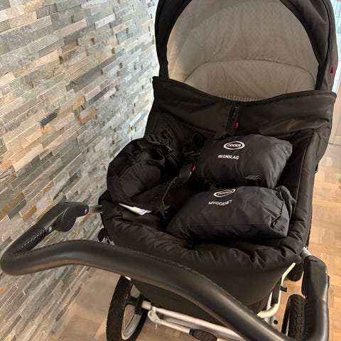 Flot og velholdt barnevogn sælges inkl. sele, regnslag og myggenet fra 2016
