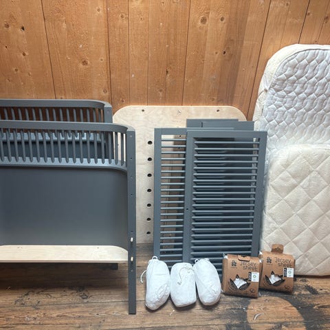 Der medfølger beslag mm samt tillægsmadras til junior længden samt 2stk lagner, der passer til baby længden. Vi har også en manual til hvordan man justerer sengen.