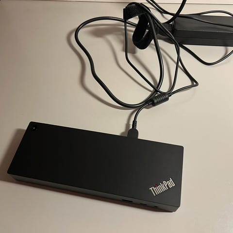 Tilbyder samlede skærm-, netværks- og strømforbindelser for at reducere kabelforurening og muliggøre hurtig tilslutning af en bærbar til eksterne enheder og skærme i daglig brug.