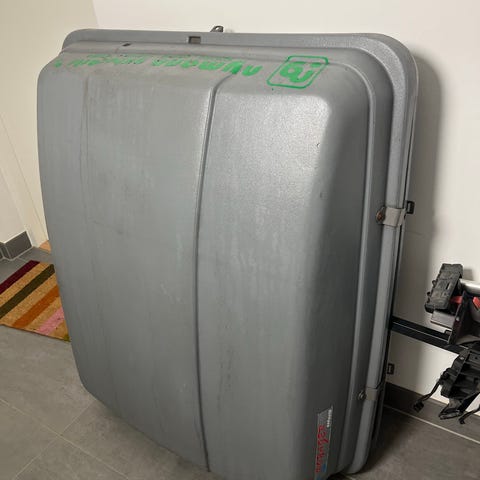 Tagboksen fungerer fint. Den har en lille revne i den ene side - kan fint fikses med lidt gaffatape.