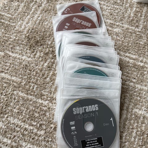 HBO The Sopranos komplet serie dvd boks. Indeholder alle sæsoner af tv-serien samlet i en boks. Dvd’erne står enkeltvis i deres originale covers.