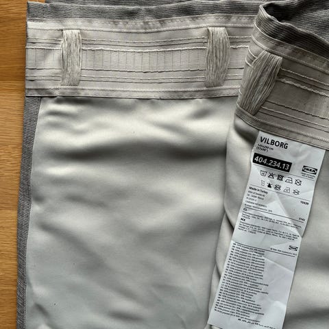 IKEA VILBORG gardiner i beige. Gardinerne har påsyet rynkebånd øverst, som gør det muligt at lave jævne folder og hænge dem på gardinstang eller. Stoffet er vævet i en lys, neutral beige farve, som passer til mange indretningsstile. Velegnet til brug i stue, soveværelse eller andre rum, hvor der ønskes afskærmning og dæmpning af lys.