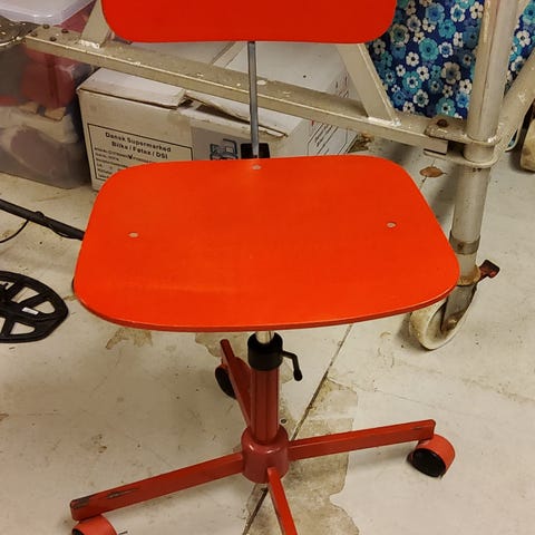 Stolen på billedet er en vintage svensk kontorstol til børn, produceret af Åry Stålmöbler AB i Nybro.