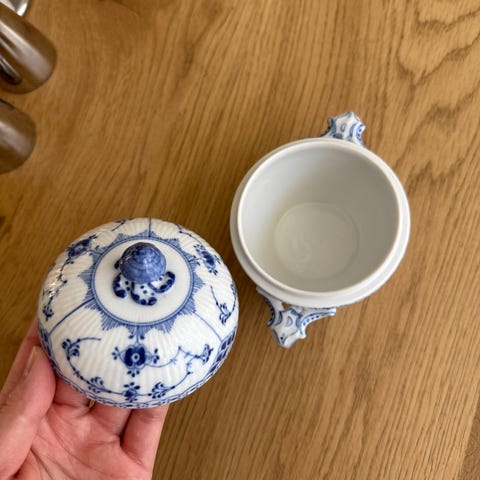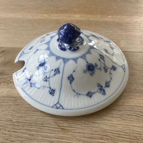 Royal Copenhagen Musselmalet Riflet sukkerskål med låg blå hvid porcelæn