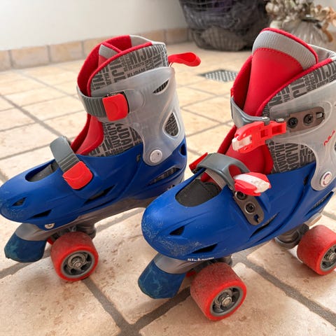 Rulleskøjterne kan indstilles så de passer til str 31-34. De er godt brugte, men virker fint