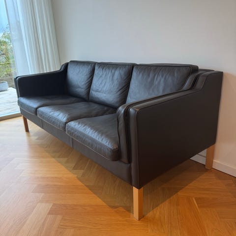 Børge Mogensen sofa model 2213 i rød læder produceret af Fredericia Furniture. Middel stand.