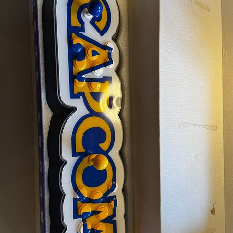 Joystick, 6 farvede knapper, start/menu-knap samt L- og R-knapper på siden.