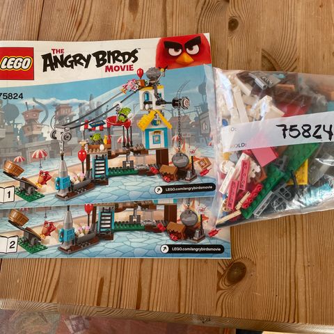 LEGO Angry Birds byggesæt med hus, lille marked og forskellige legefunktioner som katapult og bevægelige elementer. Sættet indeholder flere minifigurer inspireret af Angry Birds-universet, herunder fugle og grise, samt små tilbehørsdele som æg, kasse, tønde og sten. Egnet til byggeleg og rolleleg med tema fra Angry Birds.