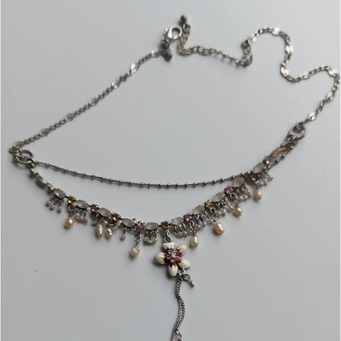 Sød lille spinkel halskæde med blå emalje pynt
