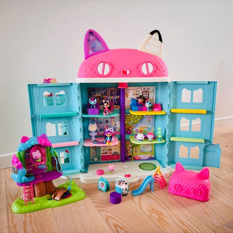 Gabys dukkehus med tilhørende figurer. Elevatoren kan køres op og ned.