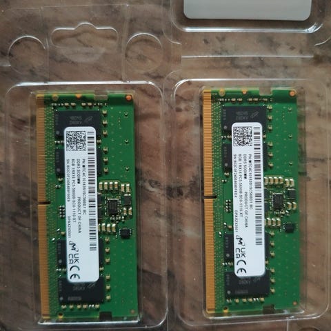 2 stk. 16GB Micron DDR5 RAM – i alt 32GB.