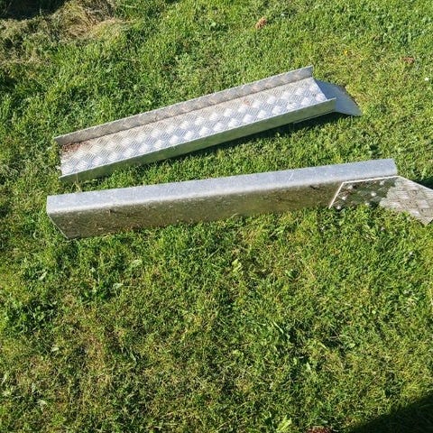 PcP perforerede metalramper med angivet max belastning på 500 kg pr. aksel. Ramperne er udført i metal med rundperforeret overflade, der giver skridsikkerhed. Velegnet som køreramper til f.eks. mindre maskiner, havemaskiner eller lignende, hvor der er behov for en stabil og perforeret rampe. 2500 mm lange, brugt 1 gang.