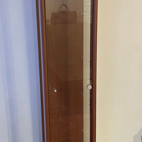 Vintrineskab med glas, skuffer og skabslåger. Malet men trænger til opfriskning pga brugsspor. Se billeder. BxHxD 95x175x41cm. Højre glaslåge hænger lidt og hviler på skuffen. Kan uden tvivl justeres hvis man er lidt fingernem. Bortgives - i skal selv hente. Det er halvtungt så min. 2 personer til at bære ud af rækkehus.