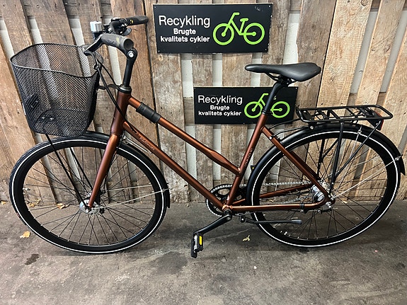 Rigtig god, velkørende og velholdt cykel, som er som ny, med 10 udvendige Shimano gear, 58 cm. alustel, rullebremser og 6 mdr. garanti. Cyklen er nyserviceret og har fået ny krans, ny kæde, nye håndtag, ny klokke, nye bremsekabler, ny sadel, nye pedaler, ny støttefod, 2 nye dæk, 2 nye slanger, nyt kranksæt, ny krank, ny bagskifter og nyt gearkabel.