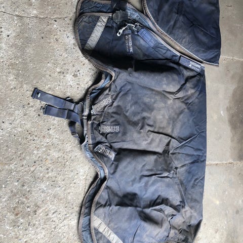 100 grams rambo duo dækken med aftagelig 100 grams hals og 300 grams liner. Størrelse 115. Kun brugt få gange, da det desværre ikke passede ponyen. Det har ikke været vasket, så det er lidt beskidt, men rent indvendigt da det næsten ikke er brugt. 1500 kroner.