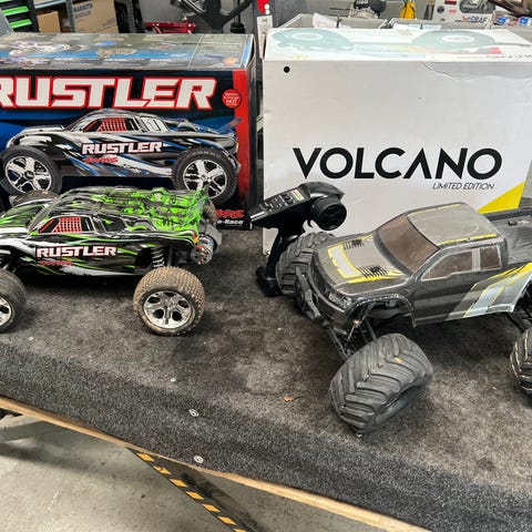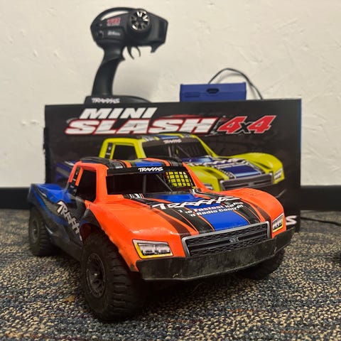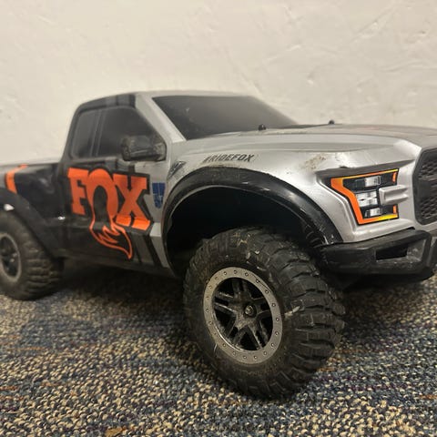 Det originale motorsæt er udskiftet til et lækkert hobbywing 3s så den køre ca 90kmt. Utrolig holdbar bil.