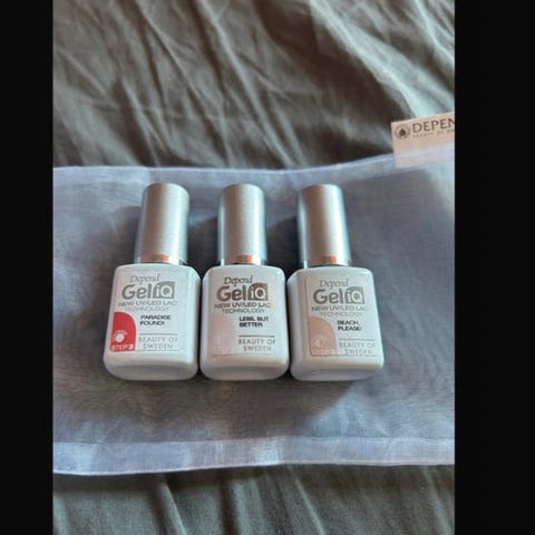 Kandii gellak i flere forskellige farver. Skal hærdes med UV/LED-lampe. Sælges samlet for 250 kr. eller 20 kr. pr. billede.
