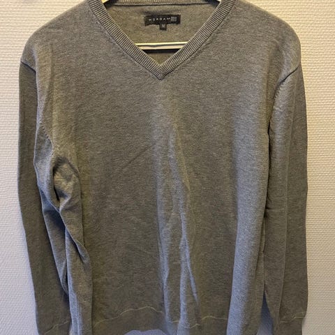 Velholdt herresweater Morgan, str. XL. Gul/sort/grå stribet med polokrave.