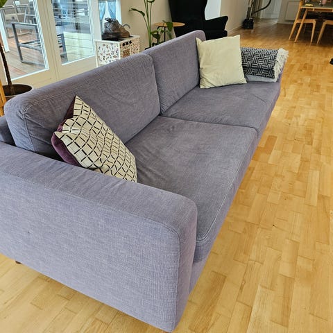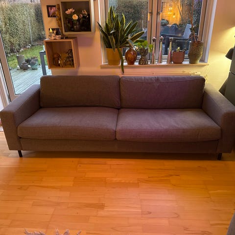 Sort/grå-meleret sofa i god stand. Sælges fra ikke-ryger-hjem. Her er sofaen der kan holde til det hele - børn, vin, chokolade mv. - betrækket er aftageligt og kan vaskes i vaskemaskinen. Den er også glimrende at sove på uden det dog er en egentlig sovesofa :) Siddehøjde: 35 cm.
