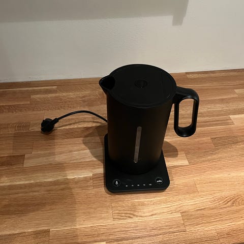 Med en effekt på 2.400 W koger vandet hurtigt, og den praktiske tænd/sluk-knap og automatisk sluk giver tryg og enkel betjening. Designet har en sideplaceret niveauskala og et aftageligt filter for nem håndtering og rengøring.