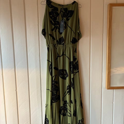 Smuk ubrugt kjole fra 5 PRE VIE W. Str. XS, men passer fint S/M. Bladmønster, plisseret underdel og med underskørt. Kan medbringes til København