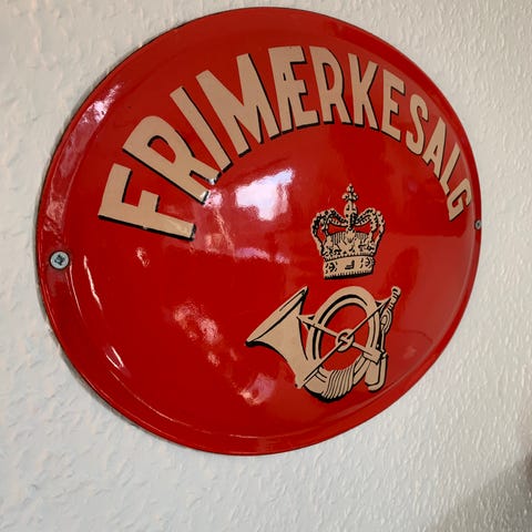 Frimærkesalg emaljeskilt ovalt rød